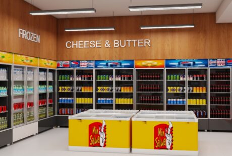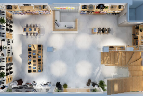 Designed to elevate the shopping experience, this store interior features a spacious layout enriched... -