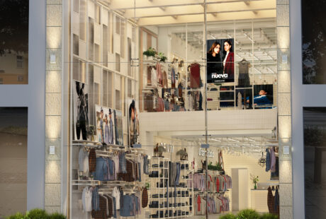 This fashion-forward retail interior emphasizes openness, brightness, and brand visibility. The spacious design, supported... -