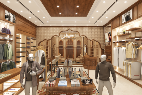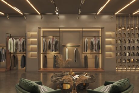 This elegant retail interior showcases a premium men’s fashion boutique designed with a perfect... -