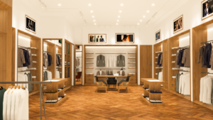 This modern store interior combines minimalist design with high-impact presentation. Natural light, sleek display systems, and a soft color palette work together to create an airy and contemporary atmosphere. The organized layout ensures effortless navigation and an enjoyable customer journey.