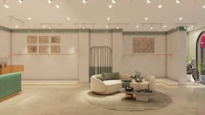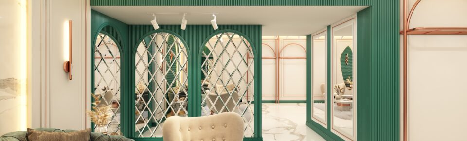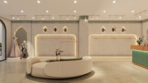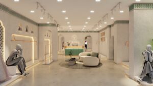 A sophisticated retail space defined by its open volumes and contemporary finishes. The double-height design enhances spatial drama, while carefully curated displays and integrated lighting ensure the products remain the focal point throughout the store.